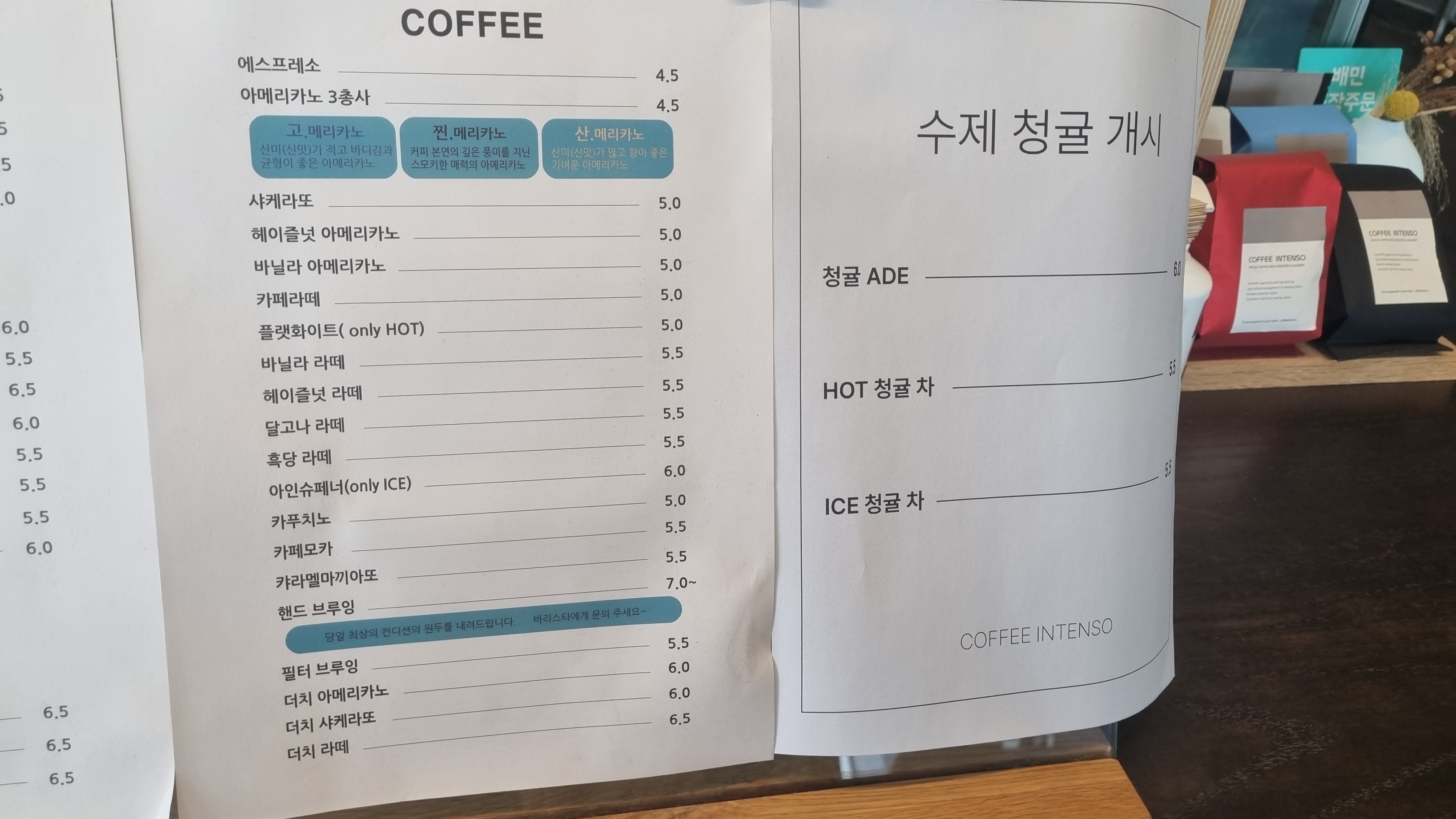 평택커피인텐소 메뉴/음료
